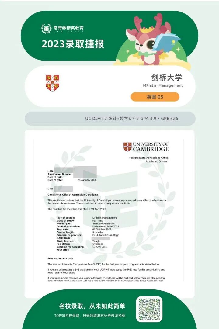 最终,J完成了一篇令他自己都感到自豪的文书。他的经历和个性通过文书老师的指导得以生动地展现出来。在几个月后,J同学也是成功收到了梦寐以求的剑桥大学管理专业的录取通知书,让我们一起拭目以待J同学将来在剑桥的发展吧!