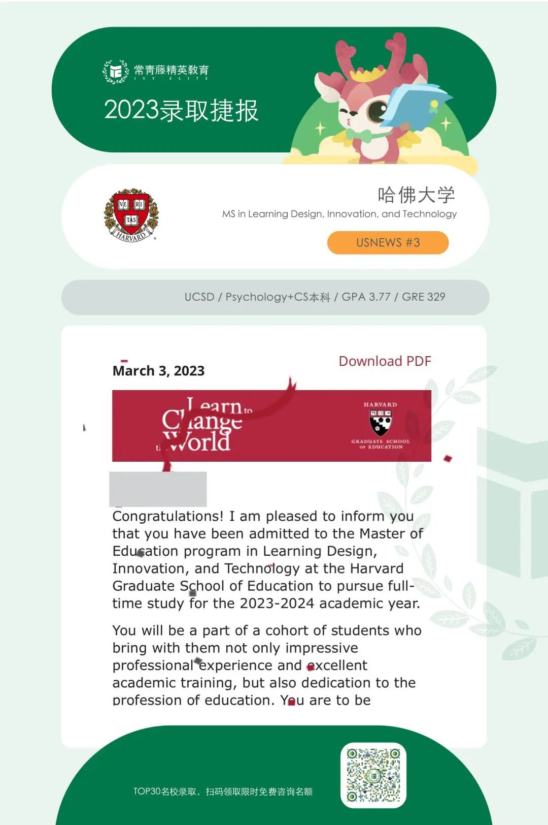 录取院校:哈佛大学 MS in Learning Design, Innovation, and Technology