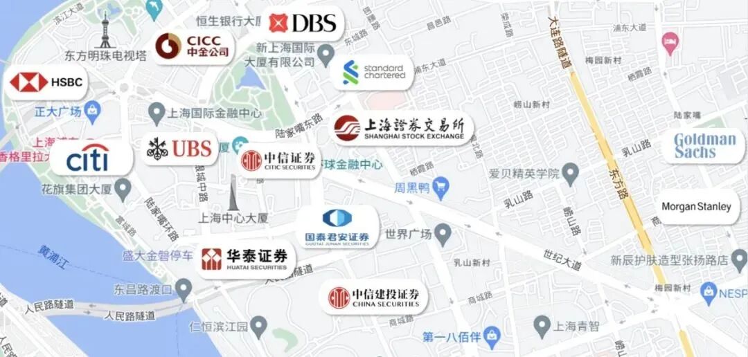 - 投行/券商:摩根士丹利、高盛等外资投行;国内顶级的“三中一华”等券商都在上海设有办公室;