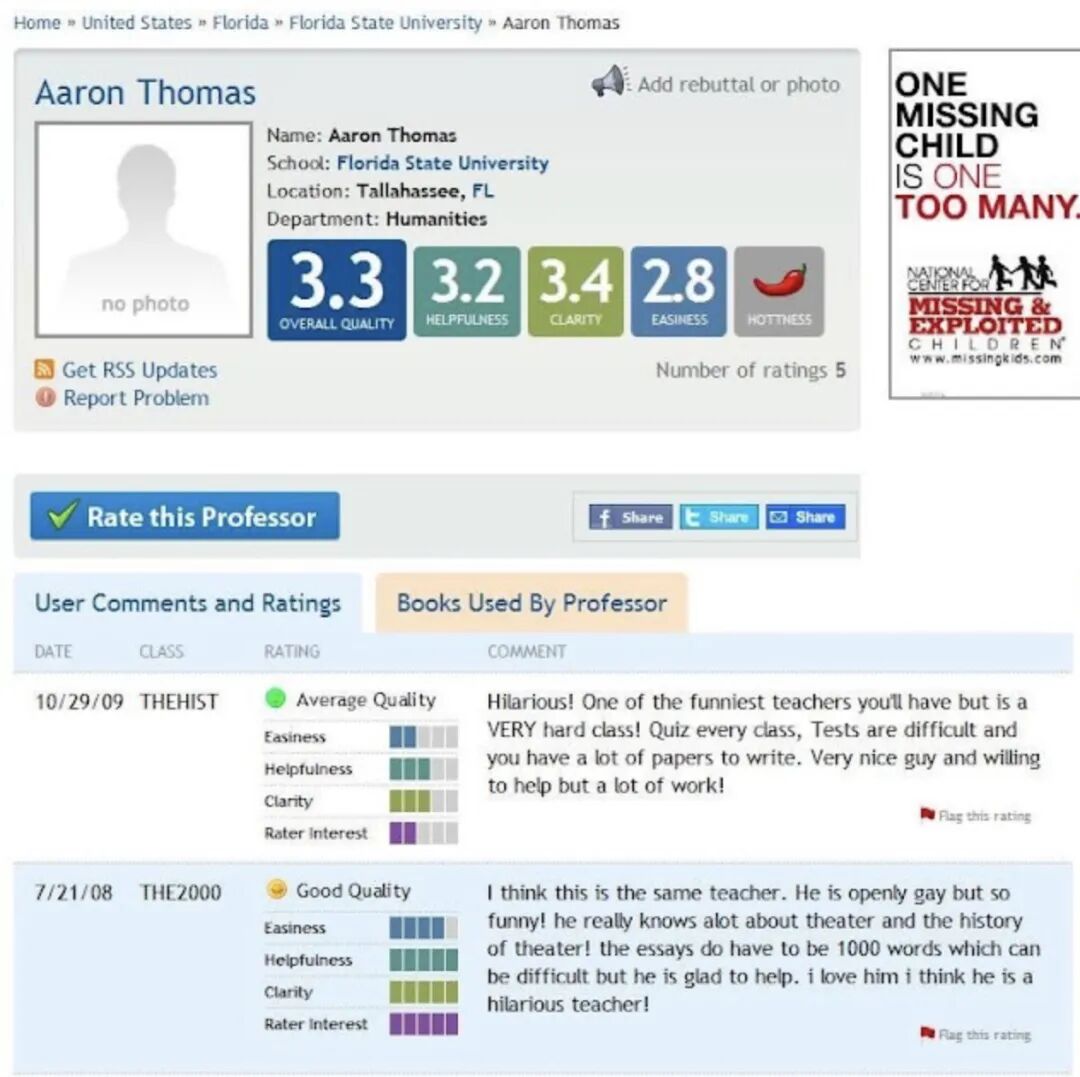 在这里建议用rate my professor网址:https://www.ratemyprofessors.com或类似网站查询教授的评分。通过这些网站,可以了解到教授的整体教学质量(Overall Quality)和课程难度(Level of Difficulty),发表个性化的评论。