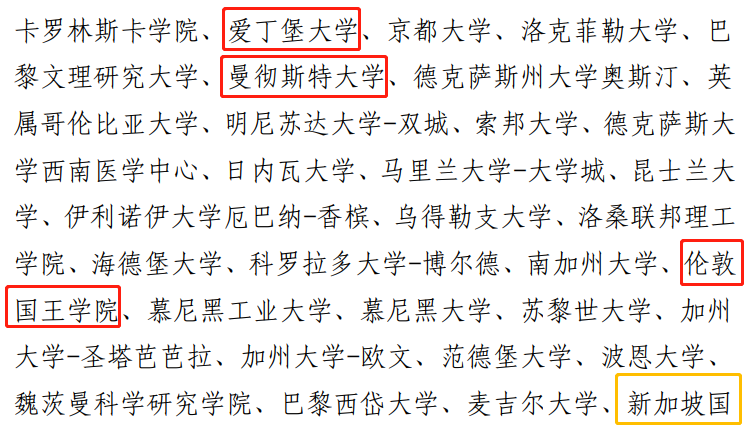 其中,符合要求的世界排名前100名国(境)外院校名单如下: