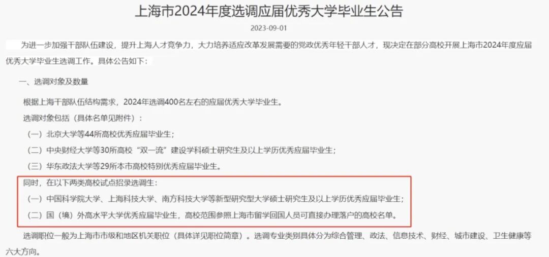 留学生来领编制岗位!北京、上海等地官宣对留学生开放定向选调!附认可院校名单!