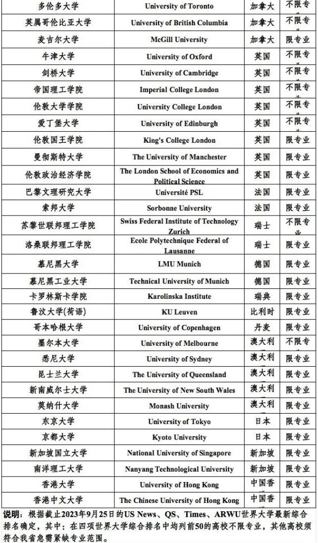 北京市此次定向选调采用的是《2023软科世界大学学术排名》,具体名单如下⬇️