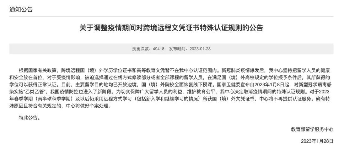 隔离政策的取消、政策支持出国留学的改变也大力推动了留学生走向世界。同期,教育部留学服务中心表示2023年起,不再认证海外远程课程文凭,种种因素导致后疫情时代的出国留学必定面临竞争持续加剧、申请人急剧增多的情况。