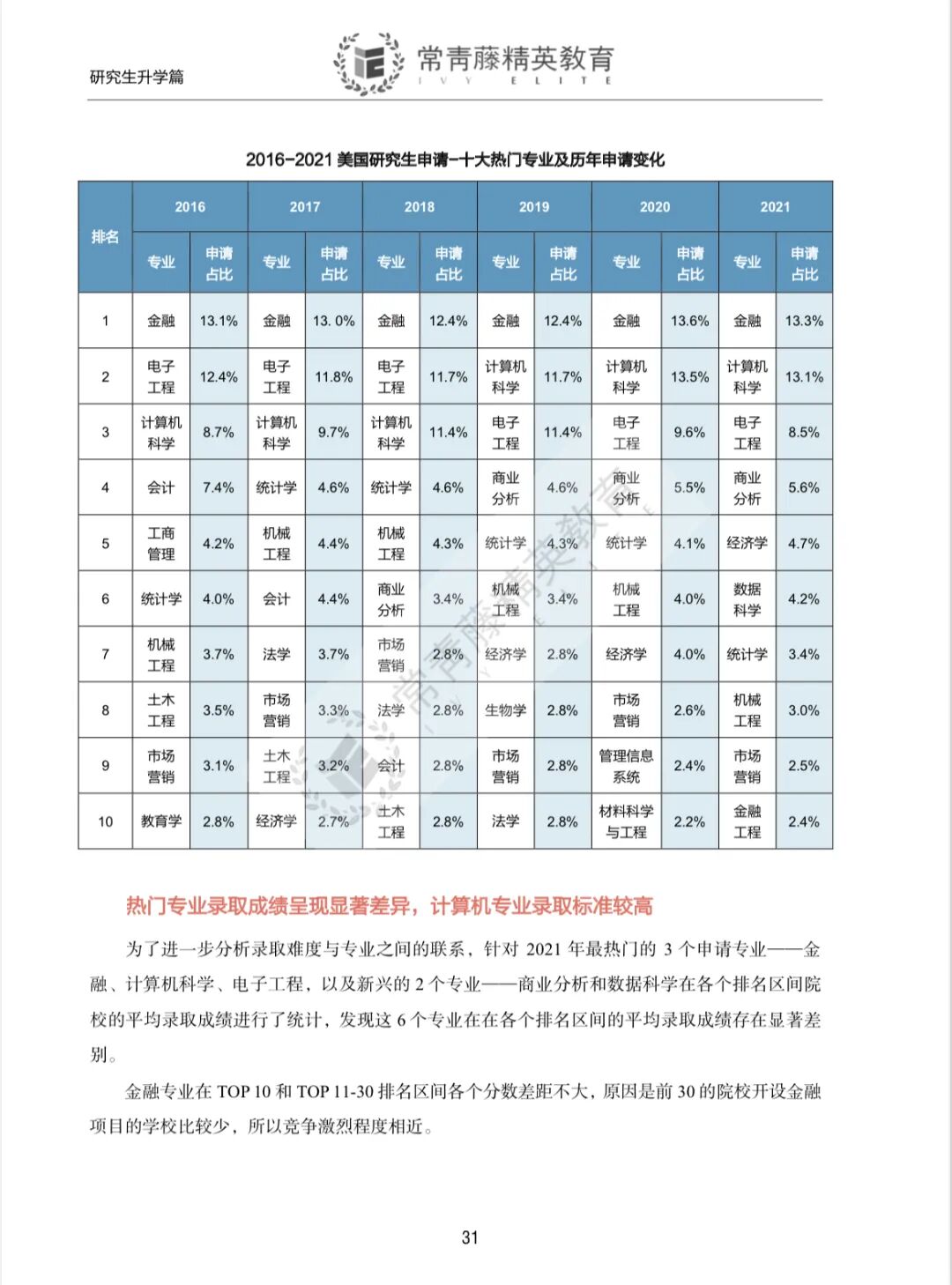 (2)美国TOP名校专业百科(涵盖20+热门专业;包括相关项目及排名、项目DDL、申请渠道等!)