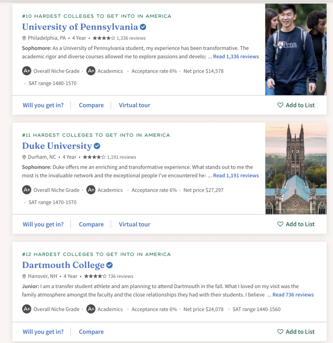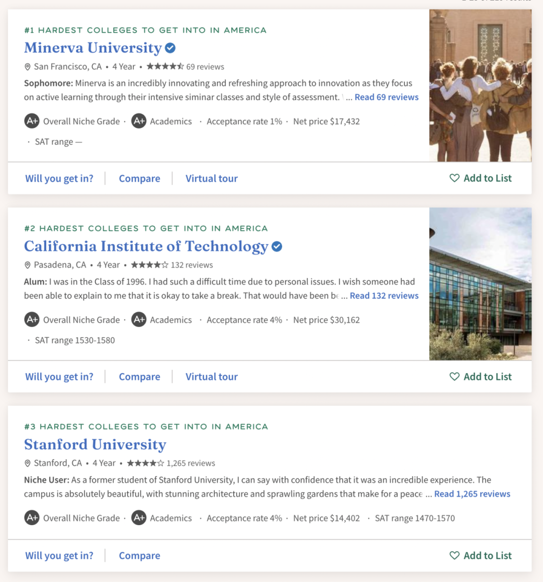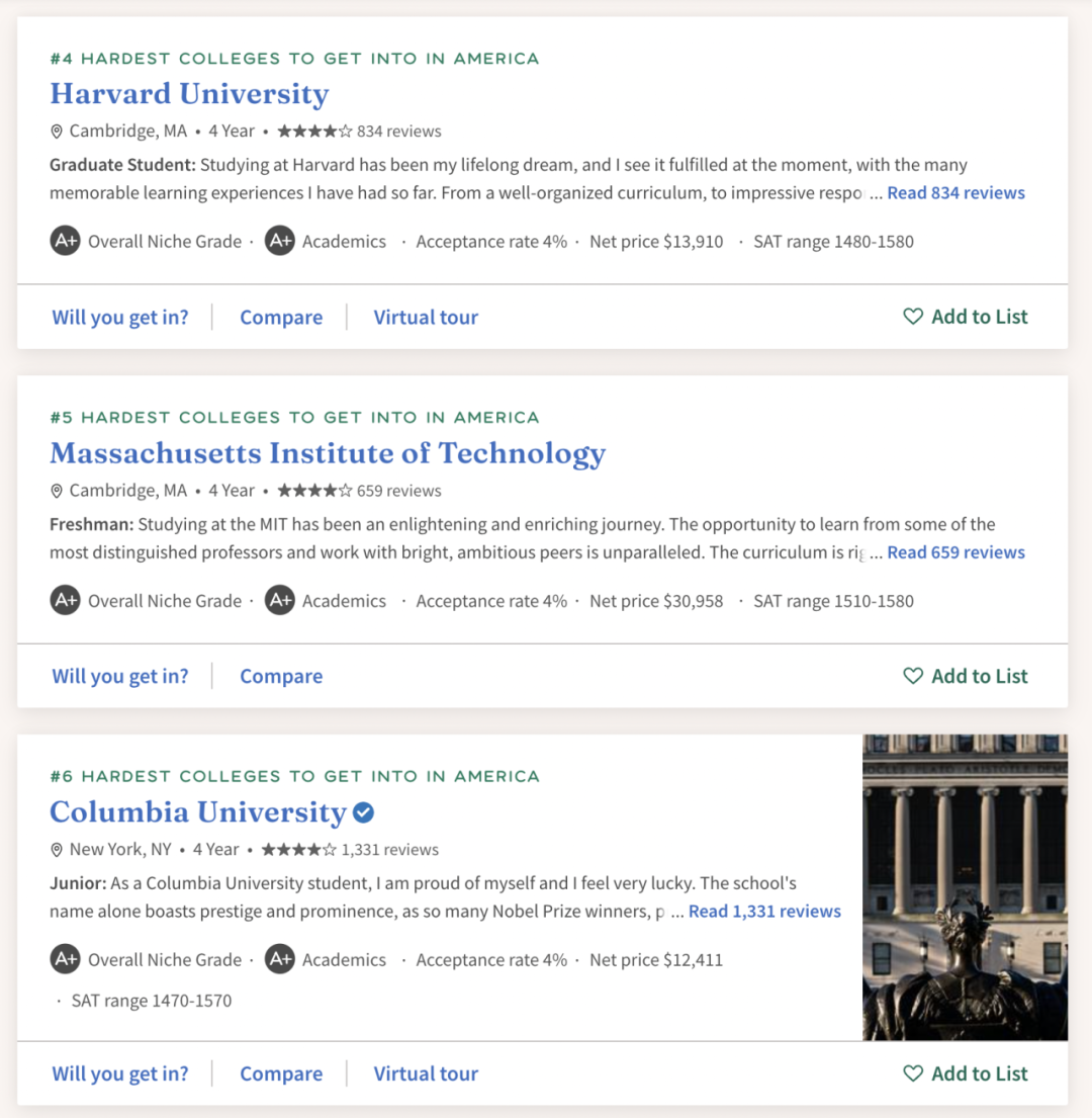 随着时间转入2024年,NICHE 依据各大学的录取率,制作了一份 "2024全美最难进" 大学排名。