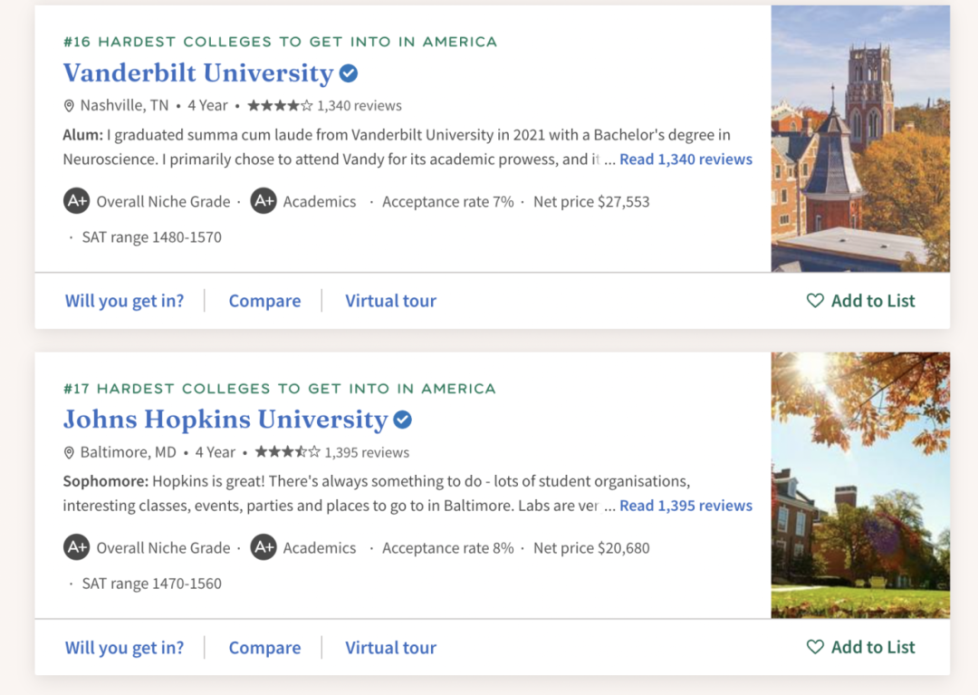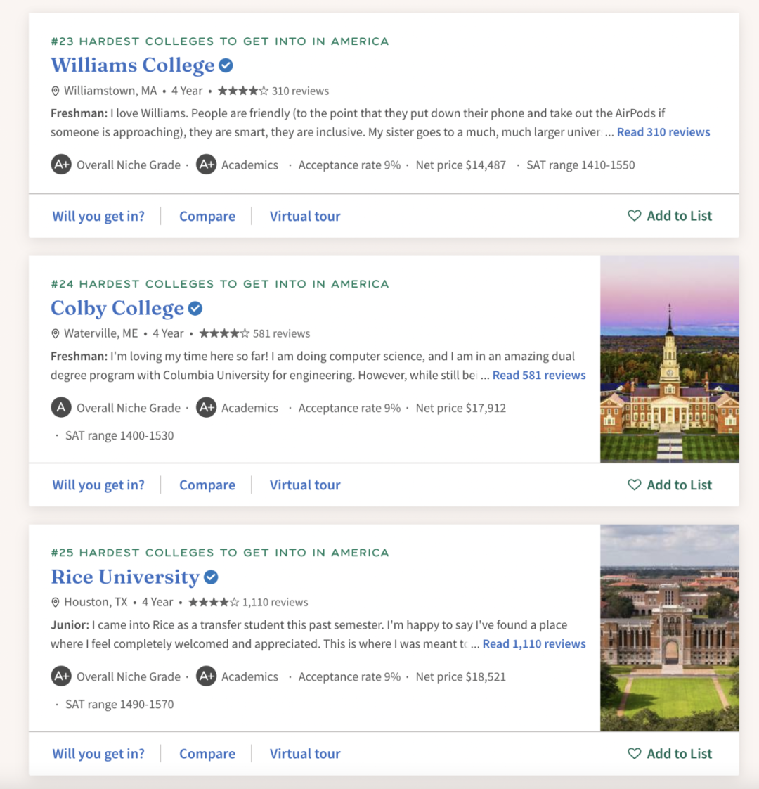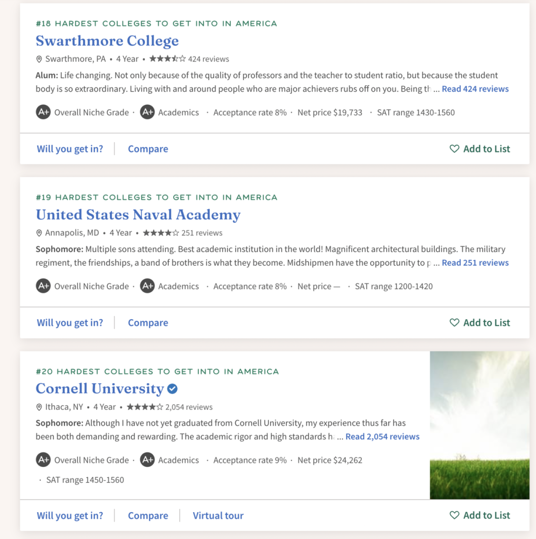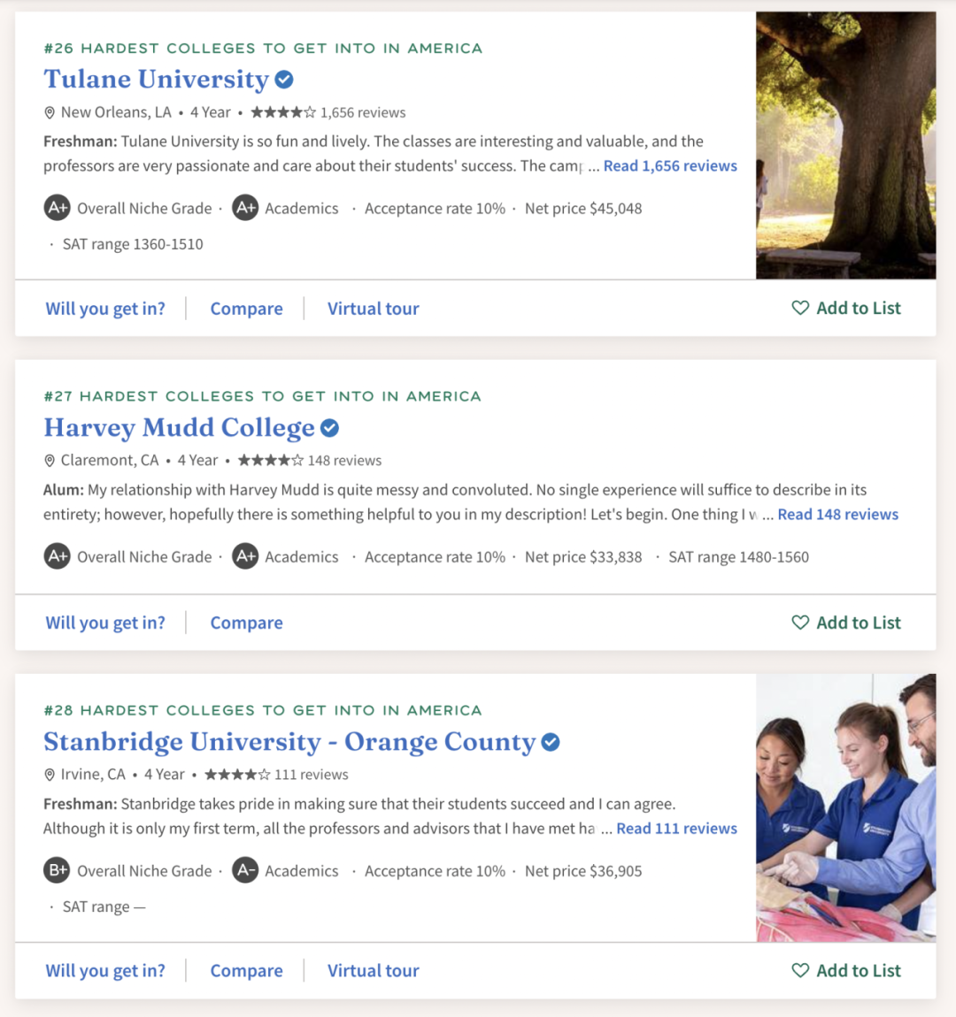 随着时间转入2024年,NICHE 依据各大学的录取率,制作了一份 "2024全美最难进" 大学排名。