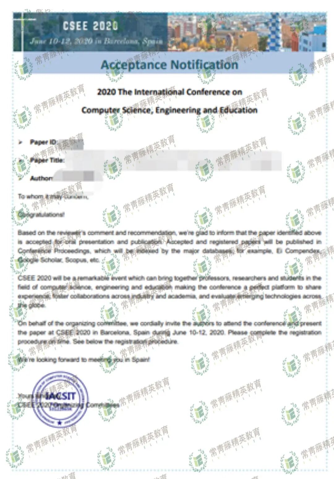 国际英文会议论文发表(学生作为独立第一作者,EI/Scopus/CPCI收录&检索)