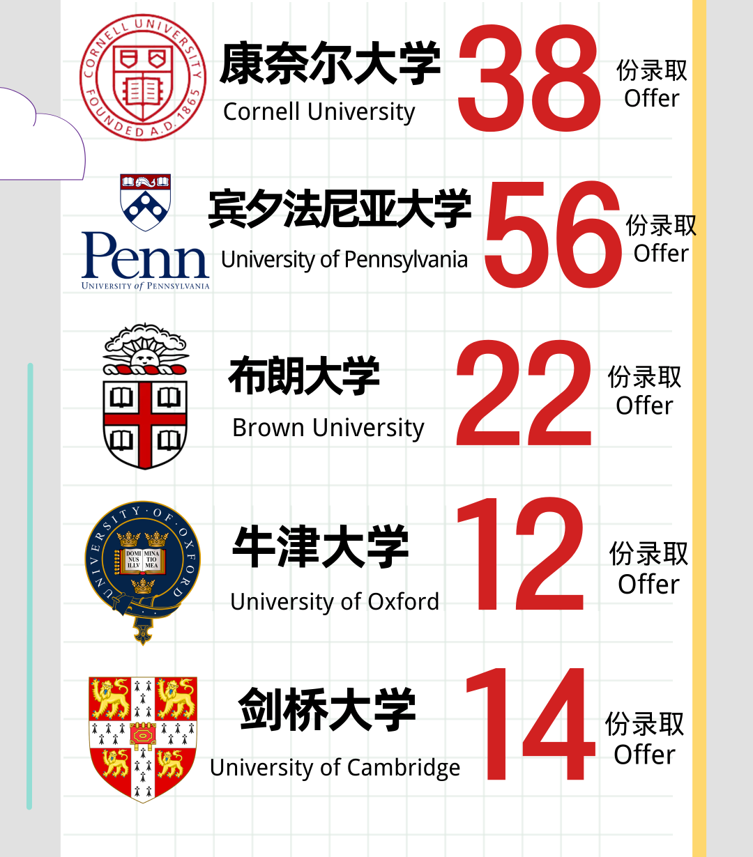 至今已累计帮助超过5000名学生实现名校梦想。TOP50录取率高达98%,藤校录取率遥遥领先!
