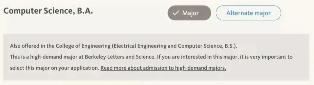 UCB强调入学后更难改变专业,似乎在暗示我们不要依赖于"曲线救国"的方式来申请热门专业。