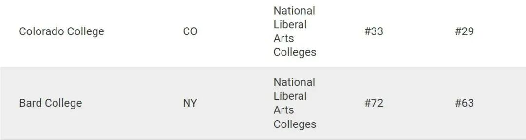 科罗拉多学院(Colorado College)原本排名第29,修正后排名为第33。