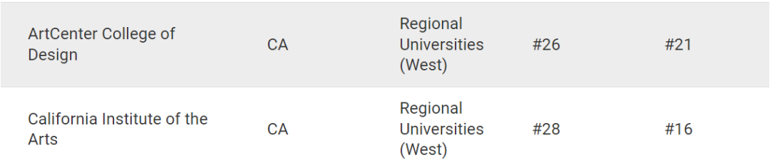 艺术中心设计学院ACCD 原排名21,修正后排名26