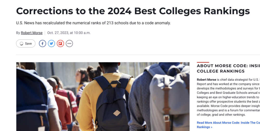 然而,令人意外的是,经过一个月的排名争议,U.S.News于10月27日发布了一则官方声明,承认由于代码异常,他们错误地排名了213所学校。