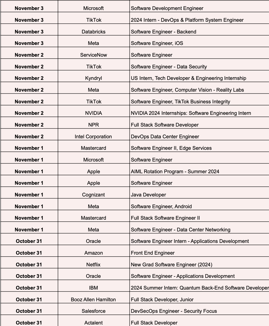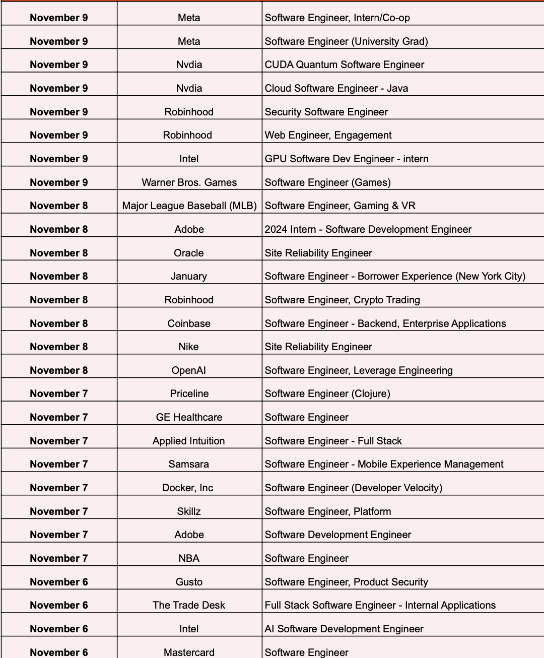 最近热招岗位表
