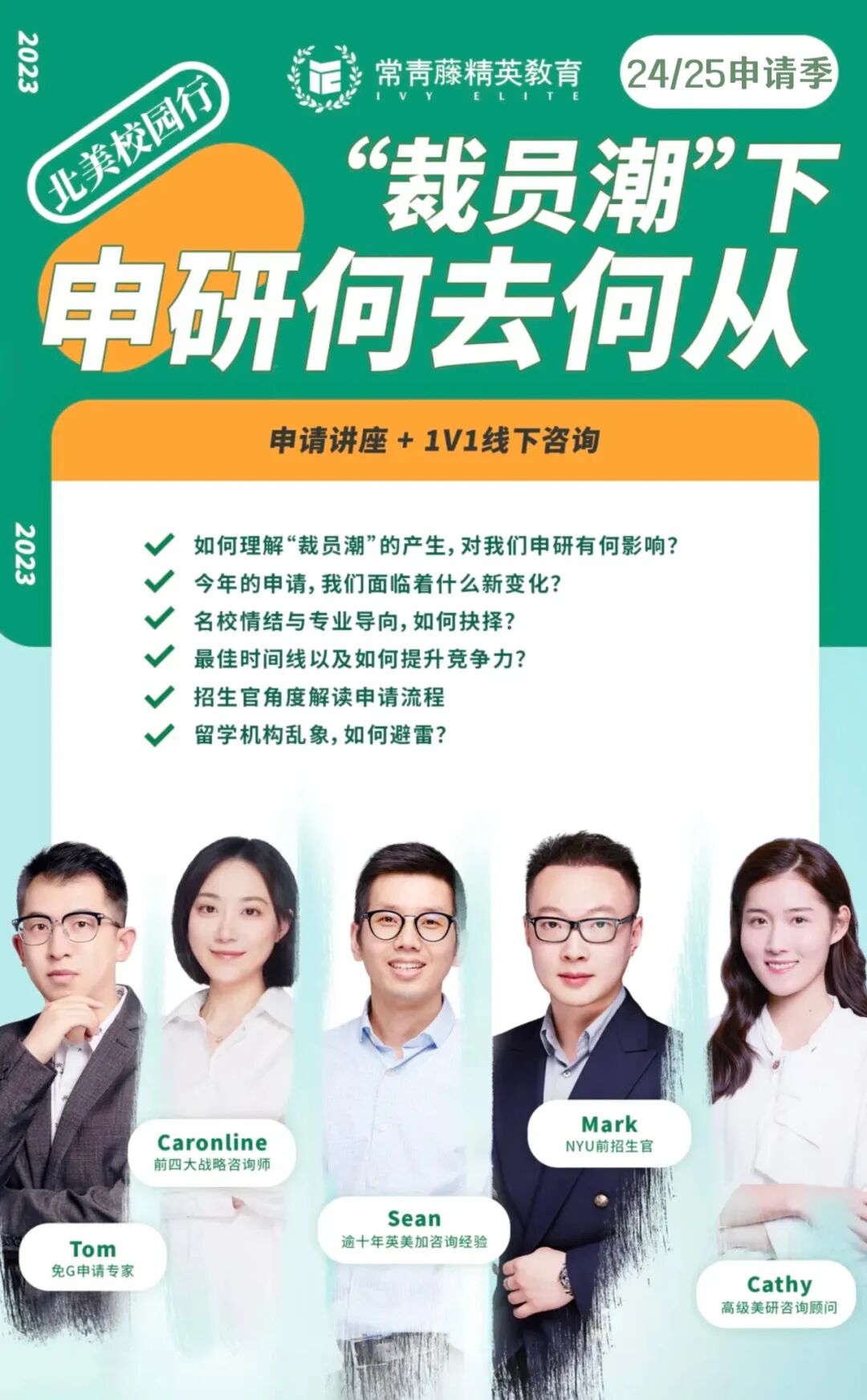 为同学们带来珍贵的招生官线下讲座&专家免费1对1申研咨询机会!用十年留学经验、数据案例和内部消息弥补你的信息差、获得最准确的信息!