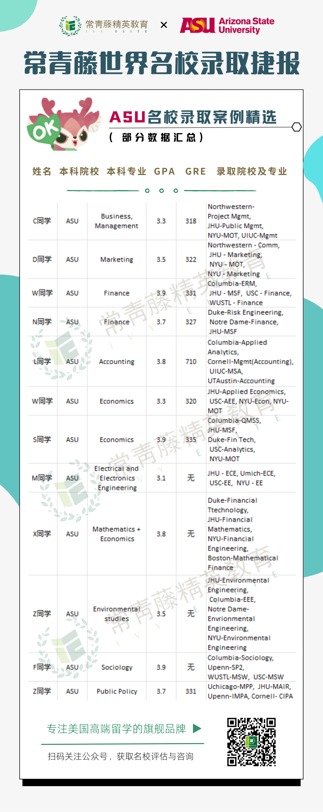 2023Fall申请季已经到了满是录取Offer的阶段!很多ASU学长学姐已经与常青藤携手获得了像哥大、宾大、芝加哥大学、JHU等名校的优质Offer!更是出现不少五申四中、低GPA绝地逆袭的案例,快让我们一起看一下👇👇👇