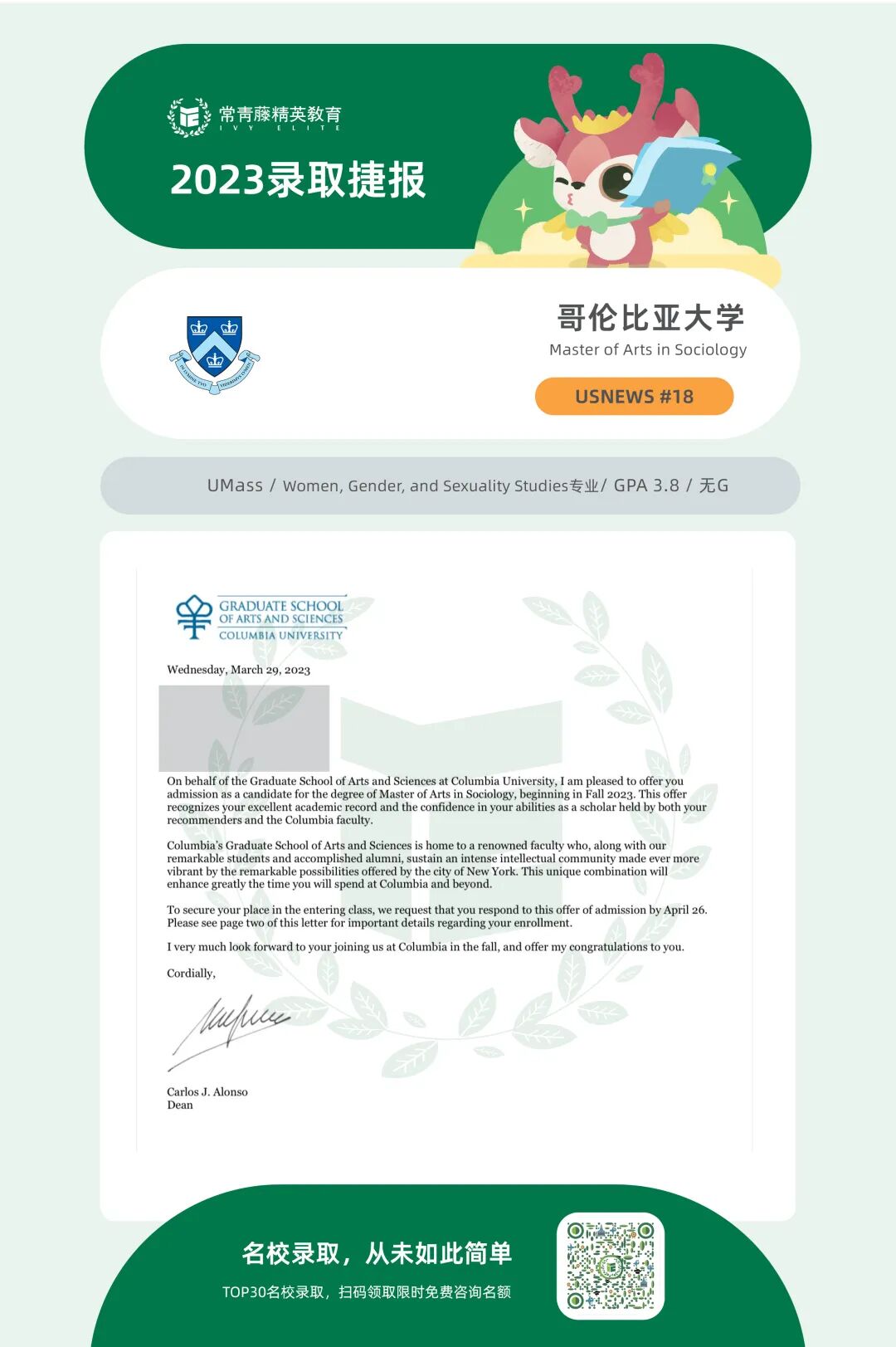 小张同学是去年年初通过UMA同校学长找到我们常青藤团队的。通过我们的帮助,这位学长在22fall的申请中收到了哥大艺术学院的录取。凭借信息差和多年行业经验,常青藤助力其一跃挺进藤校,因此学长也十分认可常青藤的实力所以力荐小张一定要找我们做申请。