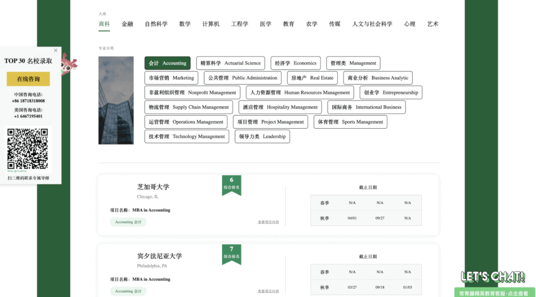 最专业的留学咨询,最全面的信息整合尽在常青藤精英教育官网,想了解更多自己感兴趣的专业就快快去自行检索吧~~