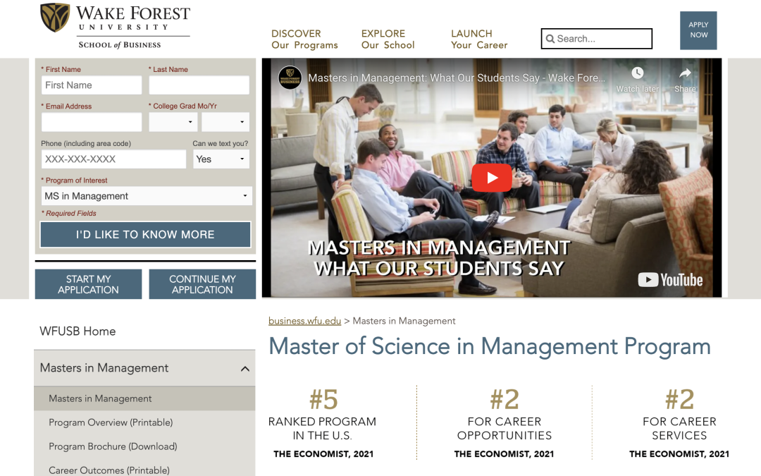 维克森林大学管理学硕士开设在商学院下,为期10个月,每年7月开始。项目专为希望在当今市场中脱颖而出的非商科专业的学生而设计。
