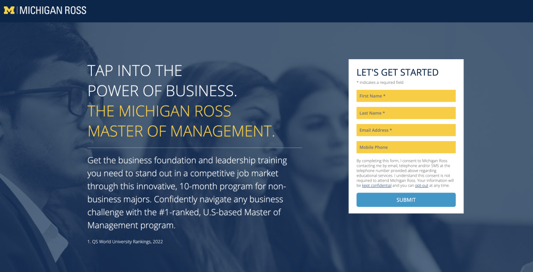 密歇根大学安娜堡分校管理学硕士项目开设在Ross商学院下,为期10个月。项目专门为非商科背景,且只拥有0-2年工作经验的学生而设计。